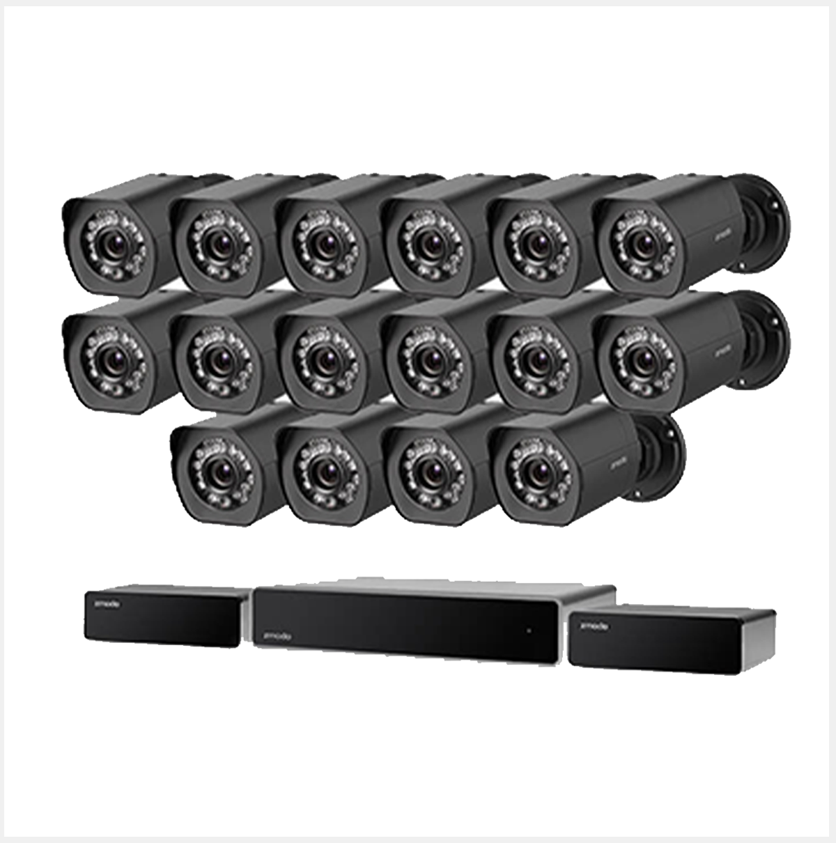 con NVR de 32 canales, 16 cámaras PoE simplificadas y 2 repetidores, Estar lejos no significa que su propiedad esté expuesta a peligros. Con la detección inteligente de movimiento, recibirá notificaciones automáticas móviles cada vez que se detecte movimiento en sus cámaras.