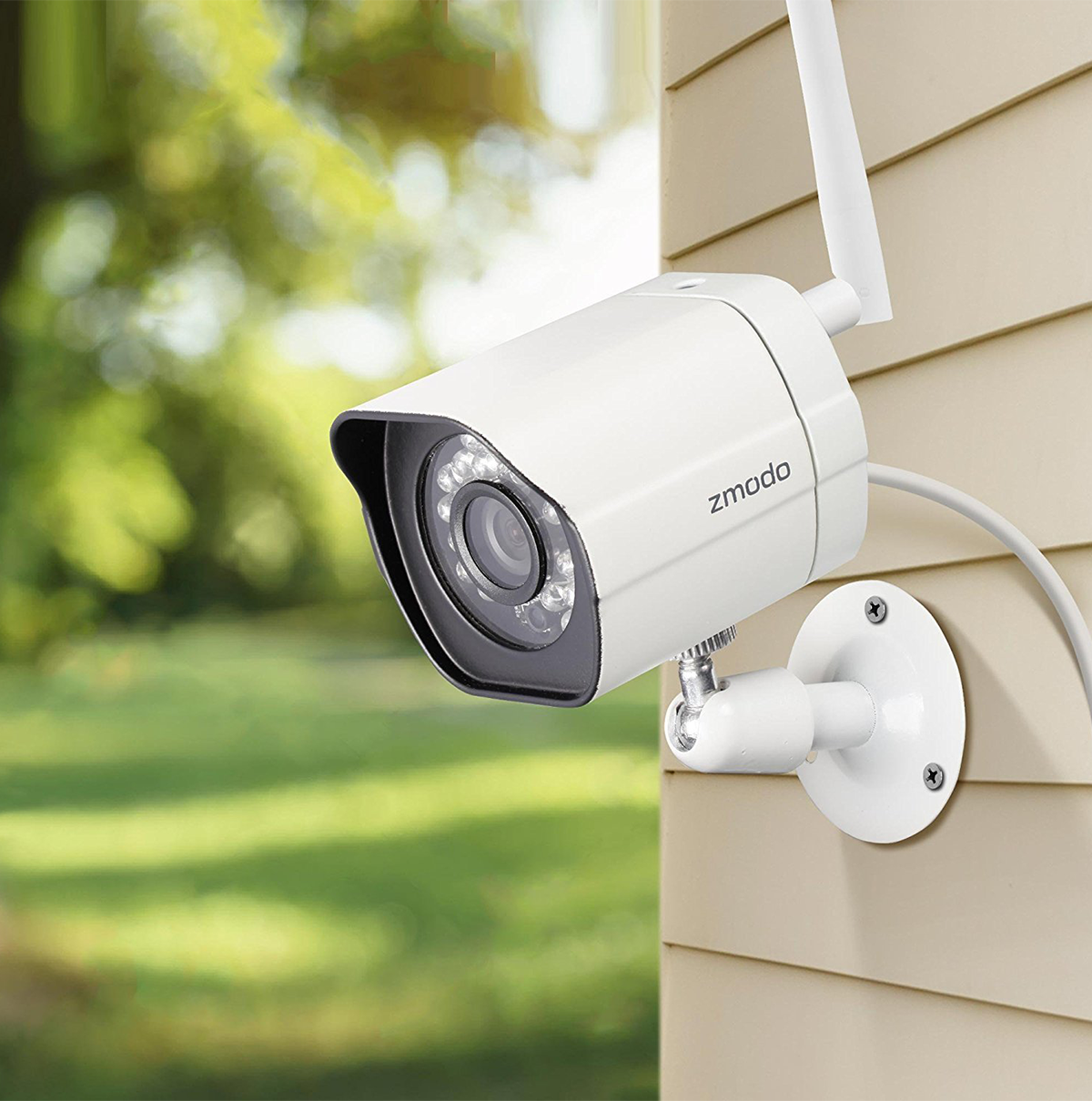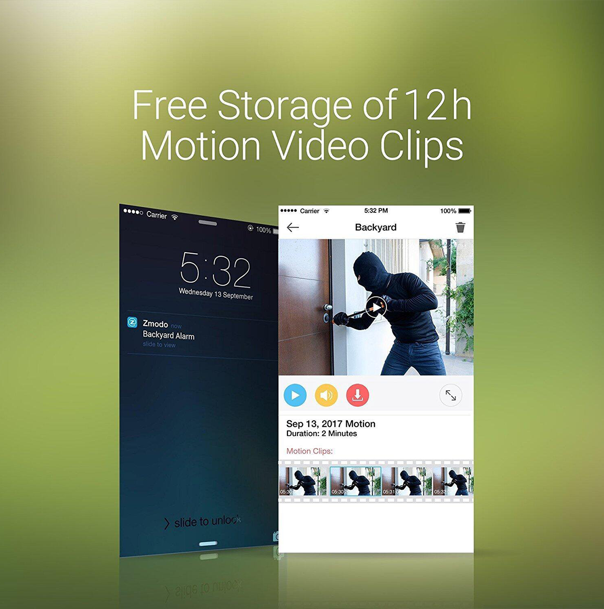 La cámara WiFi para interiores / exteriores de 720p de Zmodo ofrece video HD nítido de 720p, visión nocturna de 65 pies, alertas de movimiento y grabación opcional en la nube para garantizar que siempre esté informado. Receive notificaciones en su smartphone cuando se detecta movimiento en su camera. Los clips de alerta se guardan de forma gratuita y segura en la nube durante 12 horas.